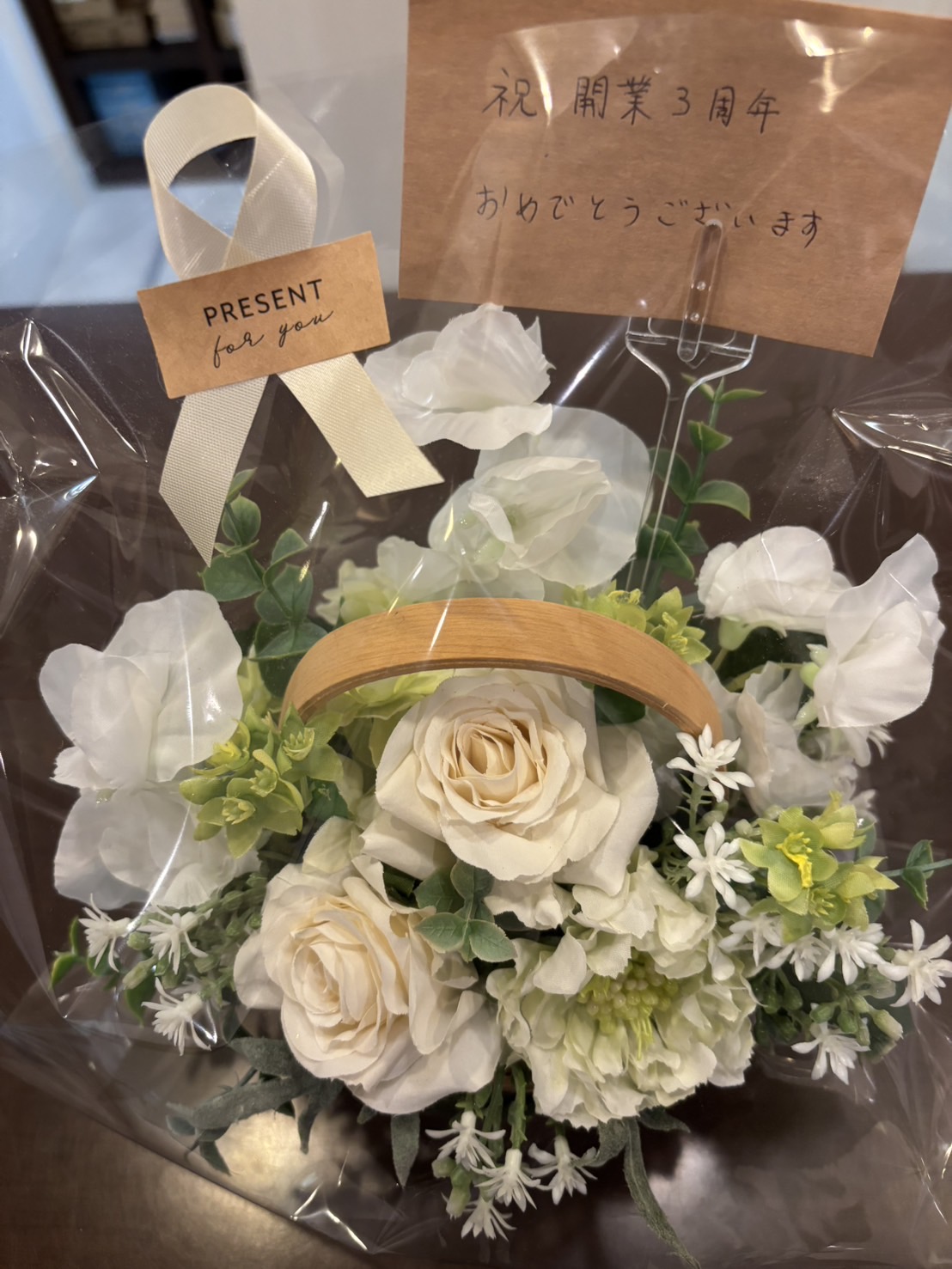 開院3周年のお祝いに、患者さまから素敵なお花をいただきました。